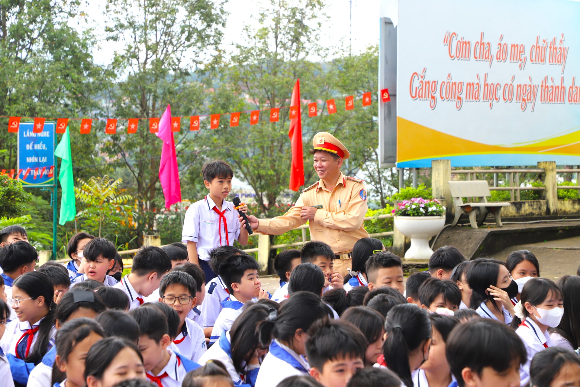 Ngày 15/9, Đội Cảnh sát giao thông đường bộ số 5 – Nam Gia Nghĩa, Phòng CSGT Công an tỉnh Lâm Đồng phối hợp với công an các xã, phường tổ chức nhiều hoạt động tuyên truyền Luật Giao thông đường bộ tại các trường học trên địa bàn, thu hút 2.836 học sinh, giáo viên tham gia.